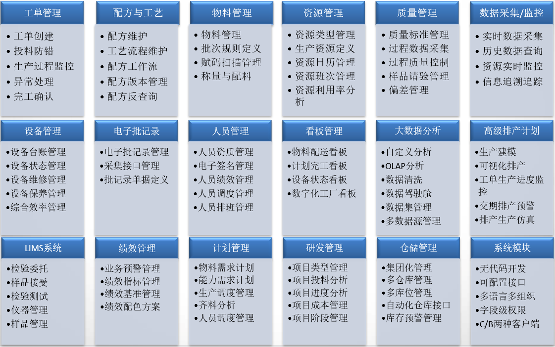 MES系統即生產管理系統,是針對流程行業管理需求的一套面向生產執行層的信息化管理系統。主要圍繞生產數據采集與分析、生產計劃管理、生產過程控制、產品質量管理、車間庫存管理、項目看板管理和設備管理等方面,幫助企業提高制造執行能力。