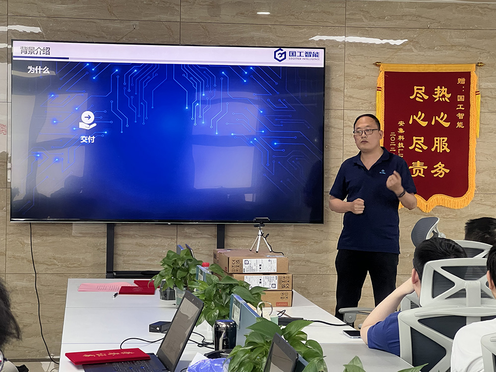 活動中,國工智能新一代智能制造平臺發布。研發部副總監聶明明基于業務應用、平臺引擎、平臺組件對平臺整體框架進行闡述,重點對低代碼開發、低代碼交互、分子式識別、文本識別等平臺能力做出演示并指出,MAI平臺是國工智能自主研發的一款高效的低代碼開發平臺,在平臺中,用戶能夠快速搭建出目標業務系統,以此提升項目交付效率。