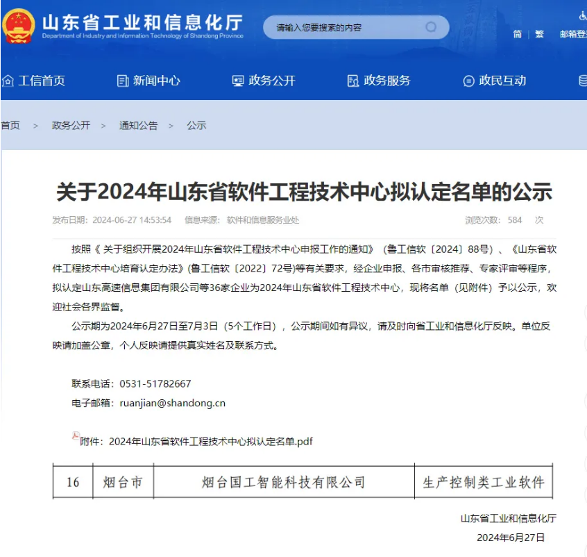 近日,山東省工信廳公示了2024年山東省軟件工程技術中心名單,全省共36家企業(yè)入圍,煙臺國工智能科技有限公司成功入選。
