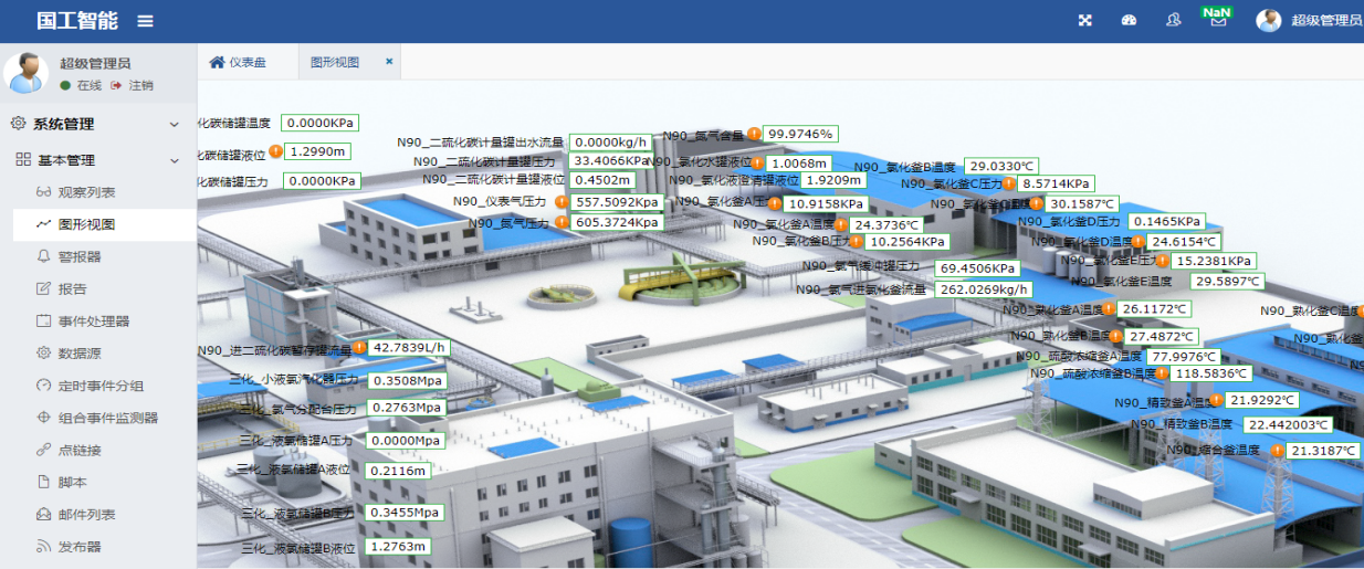 基于以上原因某化工企業決定實施SCADA系統,從生產設備、過程協同、設備底層、質量控制等方面著手,實現生產過程和關鍵性設備儀表的數據采集和監控,使生產更加透明化和智能化,保障安全生產,使企業“安、穩、長、滿、優”運行,幫助企業降本增效、開源節流,實現企業效益最大化。