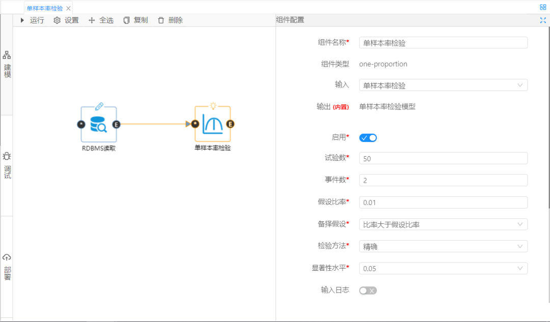 2  單樣本率檢驗(yàn)分析組件及參數(shù)配置