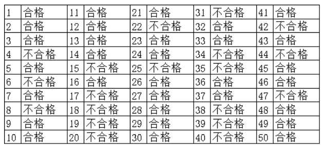 某醫(yī)療用品生產(chǎn)企業(yè),對(duì)生產(chǎn)的醫(yī)用防護(hù)手套外觀有一定要求,要求手套寬度符合≥80mm的標(biāo)準(zhǔn)。抽取10只手套,若有8只寬度都小于80mm,那么我們就會(huì)認(rèn)為實(shí)際生產(chǎn)寬度小于80mm,不可采用目前設(shè)定的參數(shù)進(jìn)行生產(chǎn)。若抽取10只,僅有1只小于80mm,那么我們并不會(huì)認(rèn)為手套的實(shí)際寬度均小于80mm。因?yàn)椋瑱C(jī)器制造手套不可能100%保證每次都是完美的,個(gè)別小于80mm是正常現(xiàn)象。所以,我們就可以通過單樣本率檢驗(yàn)來判斷手套的實(shí)際生產(chǎn)寬度是否符合外觀標(biāo)準(zhǔn)。該手套生產(chǎn)企業(yè)一天能生產(chǎn)1萬只手套,將一天生產(chǎn)的手套作為整體,通過一定的方法抽樣得到50只手套,并對(duì)這50只手套的寬度進(jìn)行檢測,寬度小于80mm的記作不合格(本案例需要每隔一段時(shí)間抽樣5只,共抽樣10次來形成樣本,以確保抽樣的涵蓋率),得到50次試驗(yàn)手套寬度的檢驗(yàn)結(jié)果,如表1所示。