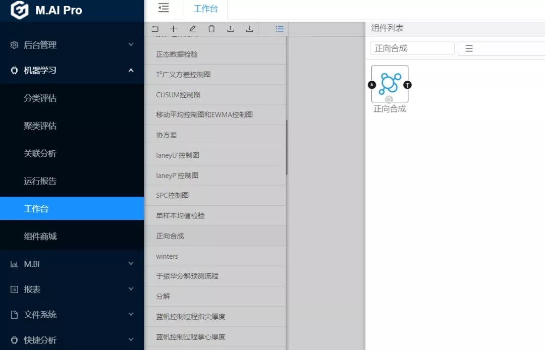首先,打開國工數(shù)據(jù)大腦平臺(tái)。依次進(jìn)行操作:機(jī)器學(xué)習(xí)-->工作臺(tái)—>新建正向合成計(jì)算流程—>拉取正向合成組件(圖1)