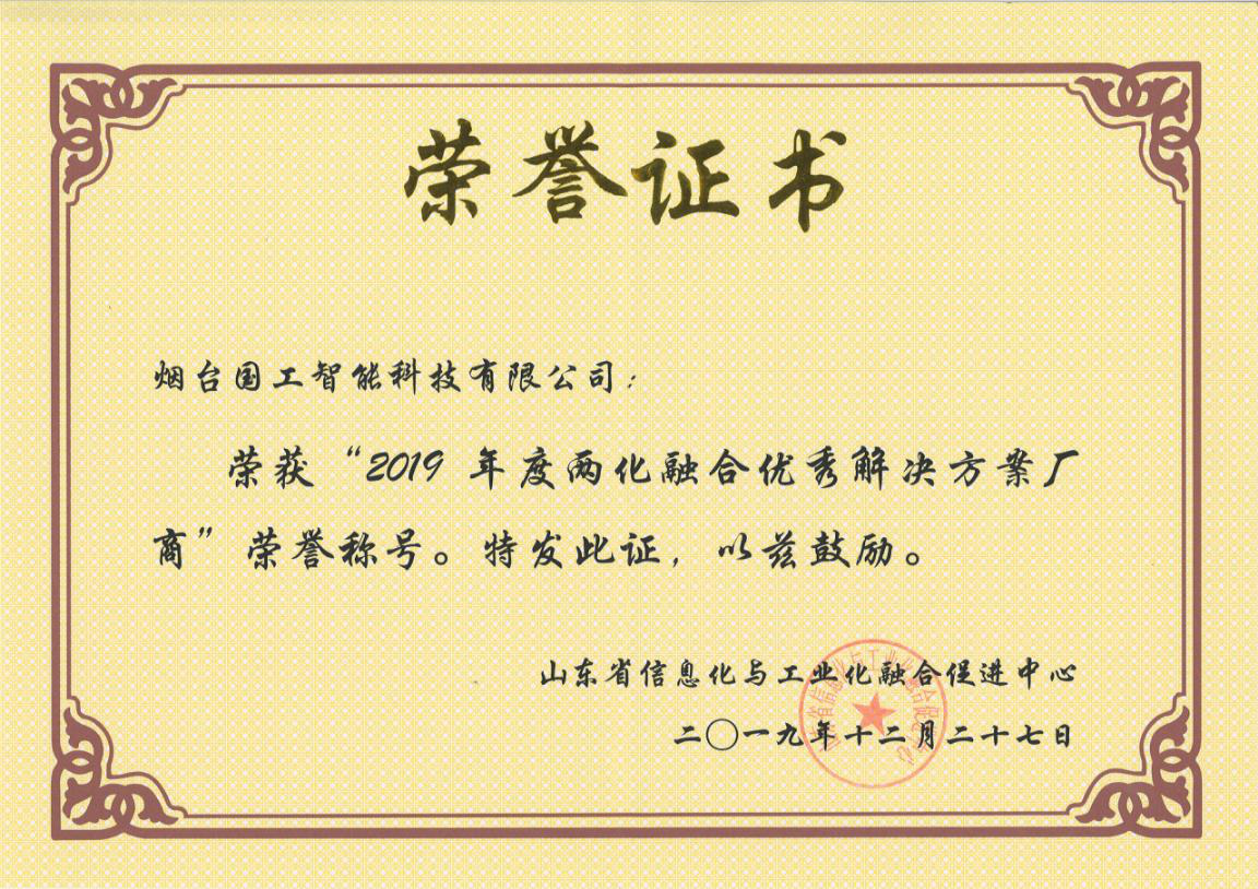 國工智能入選”2019年度山東省兩化融合優秀解決方案廠商“