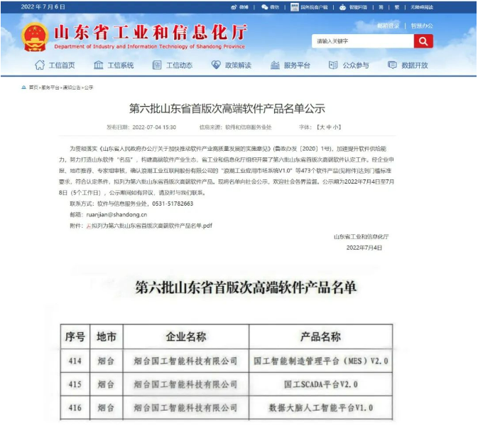 74日,山東省工信廳公示了第批山東省首版次高端軟件產(chǎn)品名單,煙臺國工智能科技有限公司自主研發(fā)的數(shù)據(jù)大腦人工智能平臺V1.0”、國工智能制造管理平臺(MES)V2.0”、“國工SCADA平臺V2.0款軟件產(chǎn)品同時成功入選,煙臺市獲批數(shù)量最多專業(yè)軟件企業(yè)。