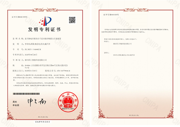 近日,國工智能新添國家知識產權局頒發的一項發明專利證書“基于靜電匹配的分子反應路徑構建方法及裝置”。